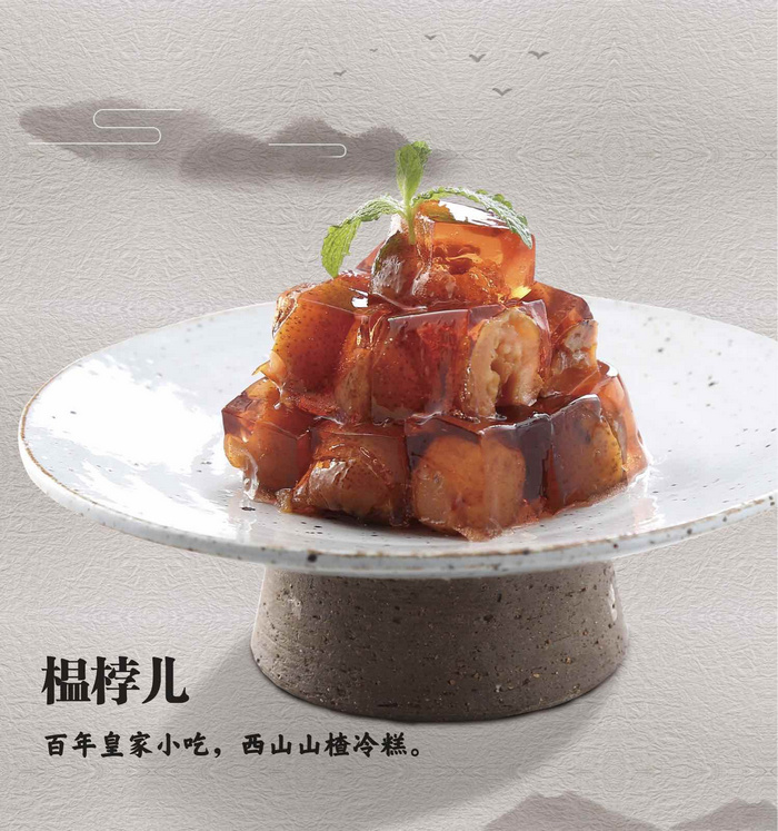 此名相傳為慈禧太后所賜,是她十分喜愛的小零嘴兒。榅桲與山楂外形相似,實(shí)則不同。它是山楂的一種,外體為紅色,更為小巧。梧桐餐廳在制作時也保證了北京傳統(tǒng)。選好果子后,先要焯水,并將水拋掉,否則有苦澀味,焯完的果實(shí)要扒皮,扒下來的皮和果肉可以一起先炒后煮。煮好的榅桲再經(jīng)發(fā)酵、冷卻,成品榅桲湯晶瑩剔透,果實(shí)軟爛甜糯,吃后不倒牙,且能長期保存,不會腐敗。