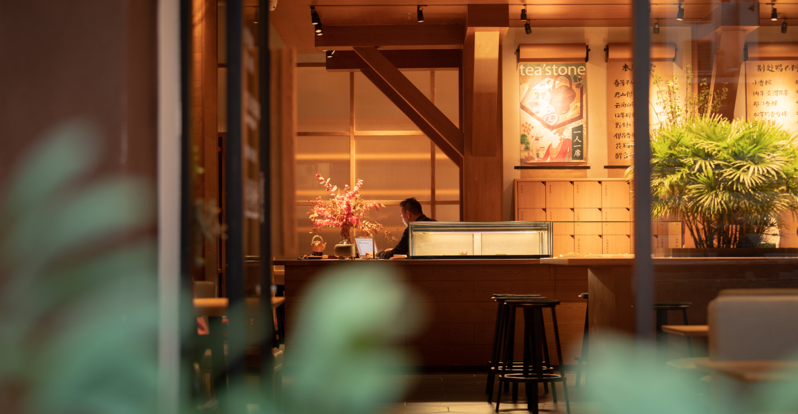 “一個溫暖的會客廳”是tea’stone對所構建的茶空間的定義,也是他們對其所提倡的茶美學生活的表達之一。tea’stone團隊有著深厚的空間美學造詣,在傳統(tǒng)的基礎上做減法,沉浸式的開放空間,選取東方美學的核心因素,以傳統(tǒng)梁柱,斗拱和椽檁,勾勒出當代簡約的茶空間,呈現(xiàn)出精制溫暖的格調(diào),家私、櫥窗、花藝凡見種種,皆散發(fā)著和諧雅致的美感。簡潔,現(xiàn)代,精致,溫暖,再結合“一人一席”的飲茶方式,讓喝茶這件事完整靈動,并且稱得上具有美感的生活方式。難怪能看到越來越多的人們抱著筆記本坐在tea’stone里面獨處、辦公、會友。現(xiàn)代中國人的“第三空間”從此又有了新的選擇。