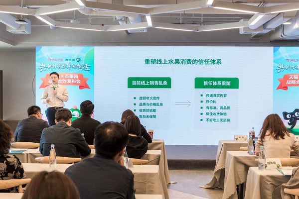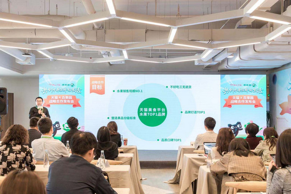 見圳客戶端·深圳新聞網2019年11月30日訊 11月29日,天貓與百果園在深圳阿里中心舉行戰略合作發布會,天貓大食品總經理無齡、大食品果蔬冰運營負責人思豪,百果園集團副總裁焦岳、電商負責人孫鵬出席會議并發表演講。本次發布會以“共創水果生鮮好生活”為主題,雙方計劃通過優勢互補和資源整合,從水果到生鮮進行全面深入的戰略合作。