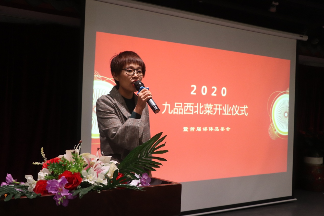 本屆媒體品鑒會由“九品西北菜”創始人兼出品總監賈淑萍女士歡迎致辭,并且分享了關于品牌創始背后的故事?!熬牌肺鞅辈恕笔莾A金河建材集團之力,萃取20多年用心精華,嚴格把控菜品供應鏈,歷史20年,打造出來的新品牌。