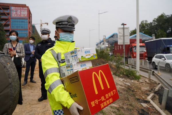 你們在一線戰(zhàn)疫,我們來為你補(bǔ)給!隨后,市關(guān)愛辦攜手伊利集團(tuán)、麥當(dāng)勞先后前往光明羌下公安檢查站、寶安區(qū)松安防疫檢查點(diǎn),為正在一線忙碌的工作人員,送上愛心牛奶與熱乎乎的愛心午餐。“你們辛苦了”、“繼續(xù)加油”……每發(fā)放一次牛奶與午餐,工作人員都不忘了戰(zhàn)疫者們致敬致謝。