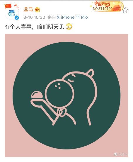 見圳客戶端·深圳新聞網2020年3月12日訊 3月10日,盒馬官方微博發布了一張浮想聯翩的海報。有眼尖的網友一眼看出,圖中盒馬IP酷似喜茶形象:“盒馬和喜茶要搞什么大事情?”
