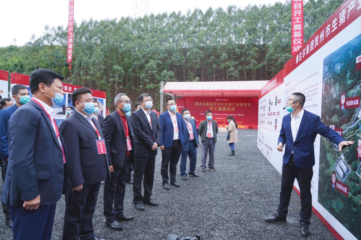 康達爾集團賀州市兩百萬頭生豬產業鏈項目是賀州加快承接粵港澳大灣區產業轉移而引進的重點項目。按照規劃,該項目總占地面積約20000畝,總投資約60億元,將采用國際先進的“立體聚落式”養殖模式和自繁自養的經營模式,把項目建設成種養結合、生態循環的現代農業產業示范園,計劃分三期進行開發,建成達產后可實現年出欄200萬頭商品豬,其中一期項目預計今年11月正式投產運營。整個項目的落成,將助力賀州打贏脫貧攻堅戰、加快全力東融,為促進粵桂合作發揮企業作用。
