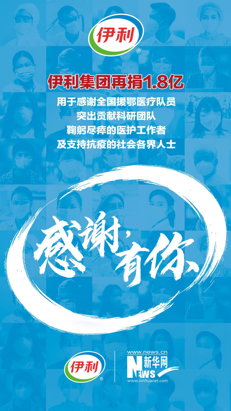 新華網北京3月26日電(胡可璐) 在這場戰“疫”中,無數平凡英雄帶給我們最多感動,他們以“逆行者”的無畏和擔當筑起疫情防控生命線,守護著人民,守護著國家。3月26日,伊利集團再捐1.8億,第一時間購買京東購物卡,贈送給全國所有援鄂醫療隊員,向他們提供全年營養支持;向鐘南山院士、李蘭娟院士、程京院士團隊捐贈1500萬元,感謝科研工作者做出的突出貢獻,共同推動健康領域的科研攻關;第一時間購買京東購物卡,贈送給這次抗擊疫情中因公殉職醫護工作者的家屬,為他們提供連續十年的營養支持;同時也向奮戰在抗疫一線的社會各界人士提供營養保障。責任無界,大愛無疆,伊利累計捐贈額度將達2.8億,共迎抗疫勝利。