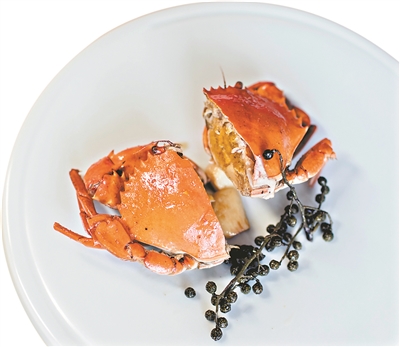 當季的食材不止松茸,還有奄仔蟹。挑選大約三兩左右的奄仔蟹,用以花椒焗,跳躍的味道讓奄仔蟹走出清蒸的慣性圈子,甘香里的一絲麻辣,讓舌尖的記憶更為清晰。印象深刻的還有那蒜頭,焗完以后,如同土豆一般地粉軟。