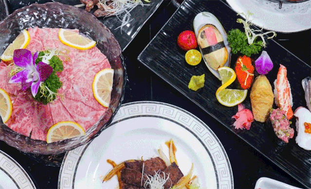 薄至0.1mm的澳洲雪花牛肉、主廚力推的招牌法式鵝肝、烤物之魂網(wǎng)燒牛肉、鐵板燒烤、手握壽司......110+款精致日料任點(diǎn)任食,鋪滿一大桌,實(shí)現(xiàn)日料自由,分分鐘吃出1000+的日料既視感。