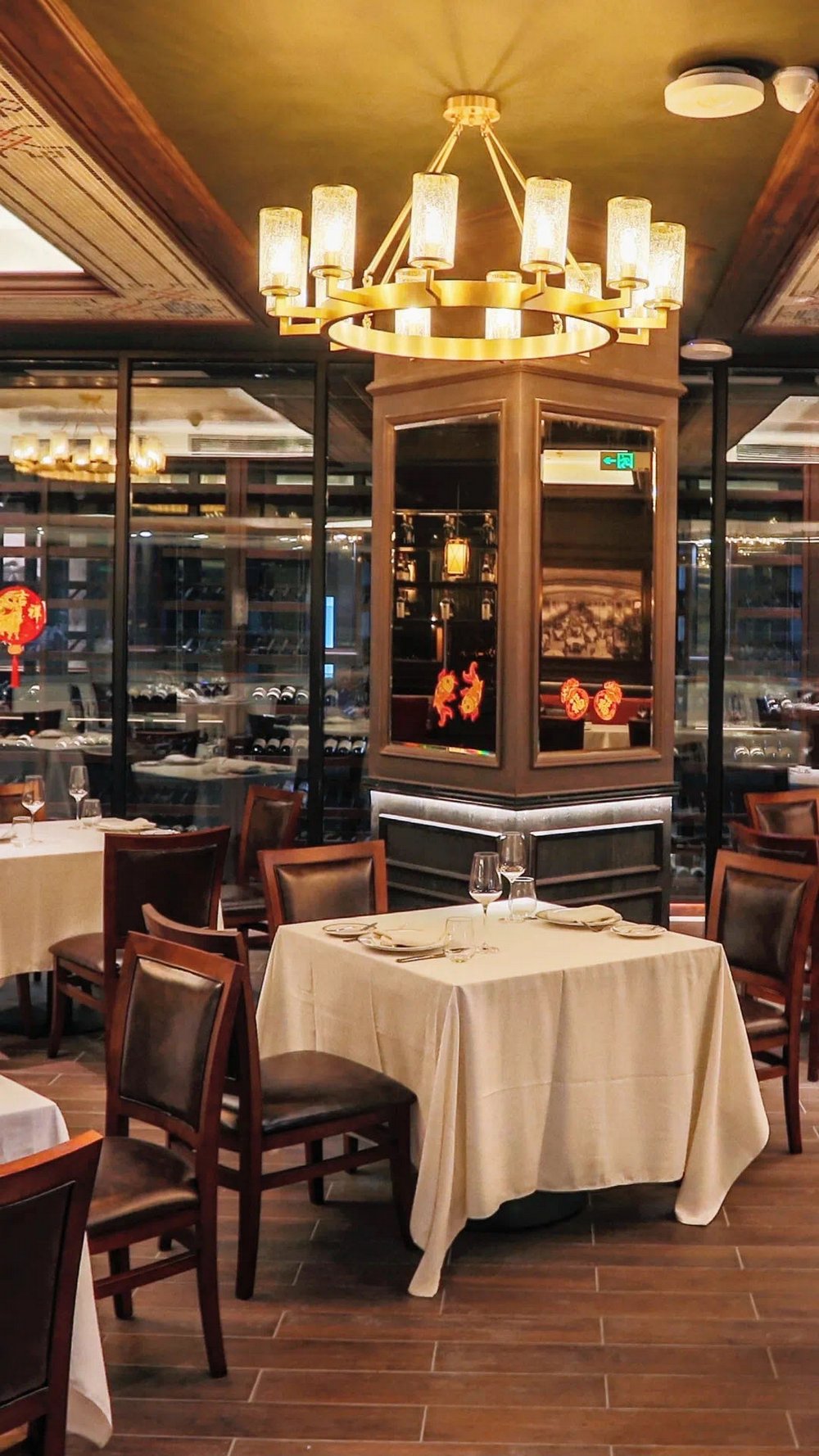 據悉,600平米的室內就餐區,包含了進門處的超長吧臺、舒適的Dining區、藏有新舊世界逾百款酒品的玻璃酒窖、可隔斷的私密空間,能同時滿足逾百人一起用餐。