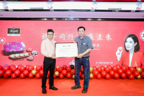 中際烘焙協(xié)會劉科元會長為佳寧娜頒授“2021中國烘焙十大金牌月餅金獎”榮譽