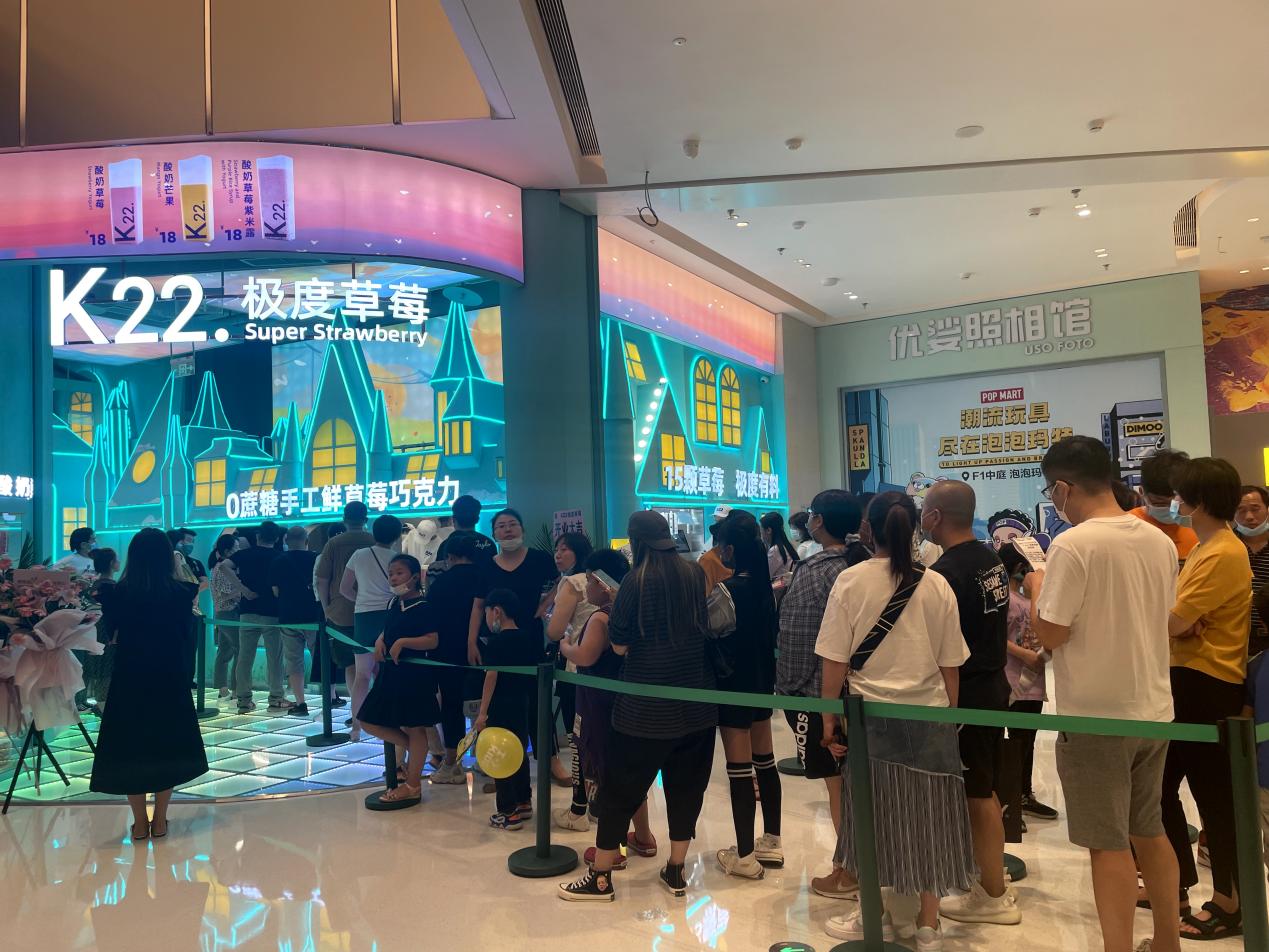 自帶流量的K22.酸奶草莓很快把店開進了北京一線商圈——西單大悅城,并在當時火速登頂大眾點評西城區熱門榜 TOP1,成為當之無愧的北京排隊王。