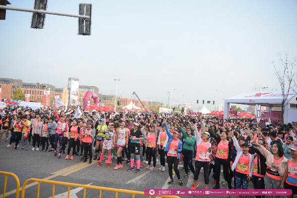 今年賽事現場最大的亮點在于,取消了開賽儀式,僅保留鳴槍一項流程。主會場起點區域沒有了大型噴繪的主席臺,取而代之的是小巧簡約的發令臺。上午7點,不間斷的熱身音樂響徹整個甜蜜小鎮,運動員們在進入賽道集結后,配合著音樂,跟隨著健身教練的指引一起熱身。上午8點30分,鳴槍嘉賓們準時登臺鳴槍,全體3000多名跑者一起沖出起點門,化作一片粉紅色的海洋,向著終點奔去。“取消開賽儀式對跑者來說是非常貼心的一項舉措,讓我們在進入賽道之后依然能夠繼續熱身,時間一到準時開跑,整個參賽流程也更加流暢了。”參賽選手在賽事現場直言道,簡化起跑前的儀式流程,對于跑者來說是一種更好的參賽體驗。