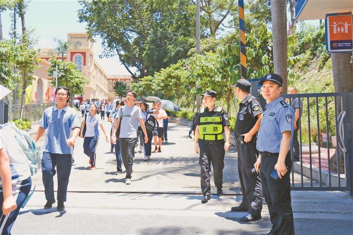 據(jù)悉,今年南山區(qū)共有5個考點,167個考場,4640名考生參加考試。高考期間,南山警方在分局指揮中心設立總指揮部,在南頭中學、深大附中、第二高級中學、華僑城中學、育才中學等5個高考考點設現(xiàn)場指揮部,全面統(tǒng)籌各項高考安保工作。同時,聯(lián)合學校、交警、消防等部門,加強對考點及周邊重點單位、公園、商圈的檢查巡邏力度,積極排查各類安全隱患,確保轄區(qū)考點平安有序,保障考生順利參考。在加大治安巡防、安全檢查、交通疏導力度的同時,南山警方同步做好服務工作。高考期間,南山警方為高考考生搭建安全便捷的綠色通道。6月7日,南山警方先后為2名“三考”考生辦理臨時身份證,從受理、制證到發(fā)證,20分鐘內(nèi)迅速完成,確保考生能安心赴考。
