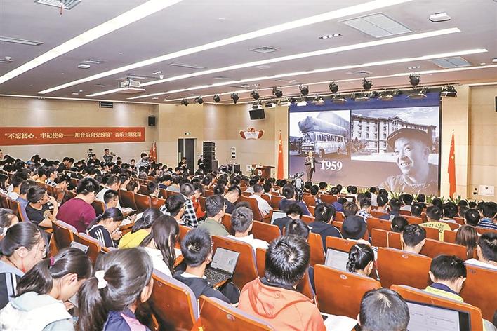 主題黨課上,劉洋用音樂串起了一條波瀾壯闊的時代線索,激發(fā)師生愛國情懷和使命感、責(zé)任感。