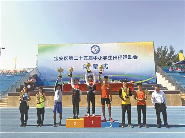▲沙井中學高中組蟬聯寶安區第二十五屆田徑運動會團體總分第一名。