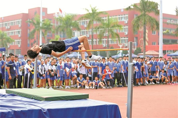 ▲沙井中學學生在第十四屆體育藝術節田徑運動會跳高比賽中表現精彩。