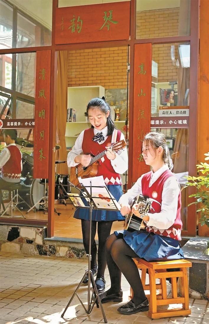 校園一角的“樂·舞臺”上擺放著一架鋼琴,陳鐵成校長說:“在沒有疫情的時候,這架鋼琴是不上鎖的,任何老師或學生都可以彈奏。同樣開放的還有琴韻閣、清心閣,不要擔心學生會破壞這些東西,美自然地呈現在學生們面前,自然地發生,真正的教育就是在這樣的情境中發生的。”