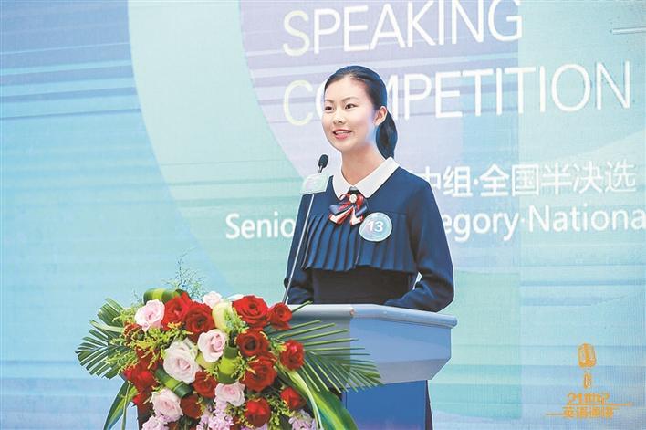 深外外語書院學生王心怡參加21世紀杯英語演講比賽全國總決賽。