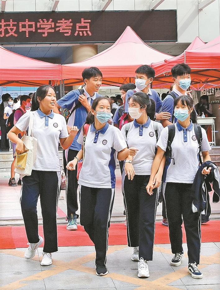 昨日下午,福田區科技中學考點,考生們走出考場。