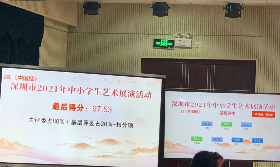 二實青春舞蹈團以原創作品《中國結》在全市各區以及市直屬學校選拔出來的37個節目中脫穎而出,獲得全場最高分!接下來,青春舞蹈團將代表深圳市參加省賽,有望沖擊全國決賽!此外,二實花語合唱團也憑借大合唱《啟程》《春天來了》榮獲深圳市2021年中小學藝術展演(聲樂)中學甲組一等獎。劉斯丹、袁丁、徐裊、張日丹等老師榮獲優秀指導老師獎。