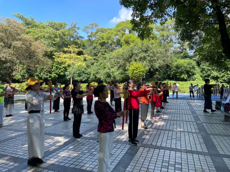 讀特客戶端·深圳新聞網2021年11月26日訊(記者 陳彬)這一兩個月來,每天早上,有一群精氣神十足的阿姨們,手持一種舞蹈道具,在南頭古城臨中山公園的地方,非常有意思地跳著一種舞蹈,成為了南頭古城的一道風景。在她們舞蹈時,時不時會有路人走近好奇地問:阿姨,你們這是在跳一種韓國舞蹈、還是日本舞蹈?她們會指著旁邊的KT板展架說:好好看看那上頭,學習學習我們中國文化。