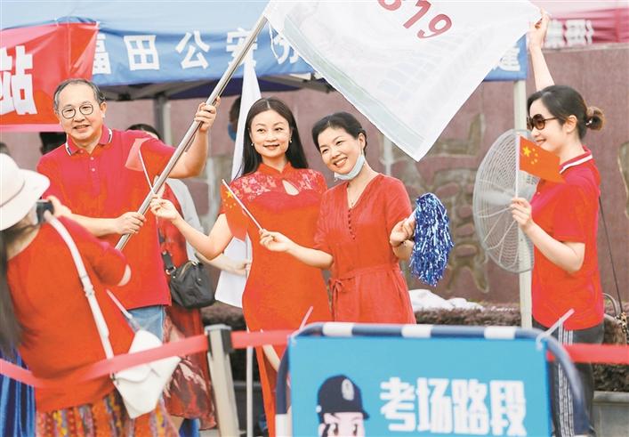 紅衫軍、旗袍團、向日葵、紅地毯、助考旗、狀元橋、棒棒糖、滿分紅包、祝福口罩、勵志條幅……