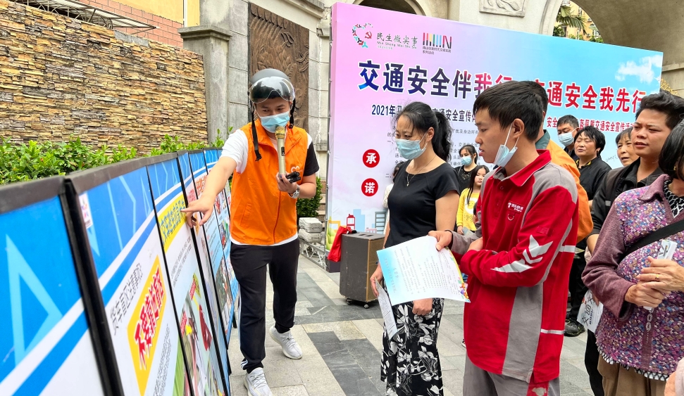 日前,南山區南頭街道馬家龍社區為繼續提高居民頭盔佩戴率,馬家龍社區黨委組織開展了交通安全宣傳體驗系列活動之“一盔一帶,安全常在”頭盔佩戴交通安全宣傳活動,該活動為民生微實事項目。