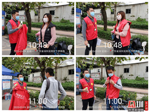 在社區工作人員的指導下,這位男子穿上“紅馬甲”,手拿體溫槍,立即投入到了防疫義工服務中。為進出人員測量體溫、登記等,這位男子“不漏一車一人”,義工服務做得十分認真。半小時志愿服務后,該男子意識到自己不戴頭盔的錯誤行為,并表示以后會注意,“這是一次很特別的‘教訓’,以后我肯定會記住戴頭盔的!”