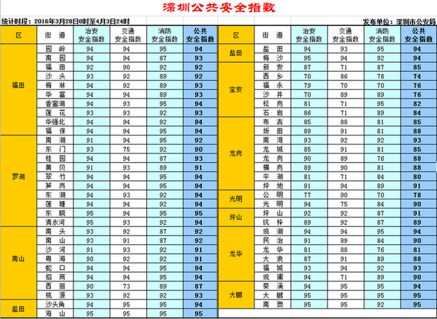 深圳新聞網訊 深圳市公安局圍繞市委市政府“城市管理治理年”工作部署要求,借鑒國內其他城市的成功做法,將于4月5日開始,每周通過《深圳特區報》、《深圳新聞網》、市公安局門戶網站、公安微信、微博,向社會發布一次深圳公共安全指數,保障市民群眾知情權、監督權,引導社會各界廣泛參與 “平安深圳”建設。
