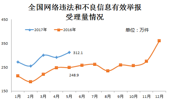 5月份全國網絡違法和不良信息有效舉報312.1萬件