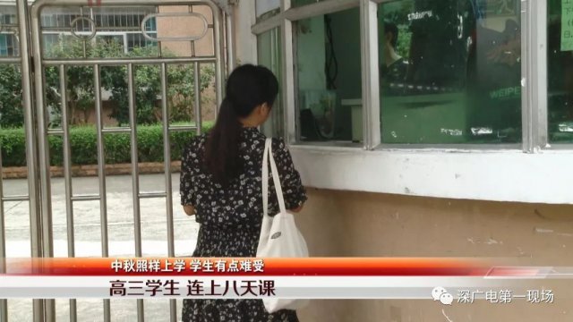 我們還了解到,就讀高三的學(xué)生只有周六放了一天假,從昨天開始就一直在上課,預(yù)計(jì)要上到國慶節(jié)才能休息,這樣算來,學(xué)生一共要連上 8 天的課程。
