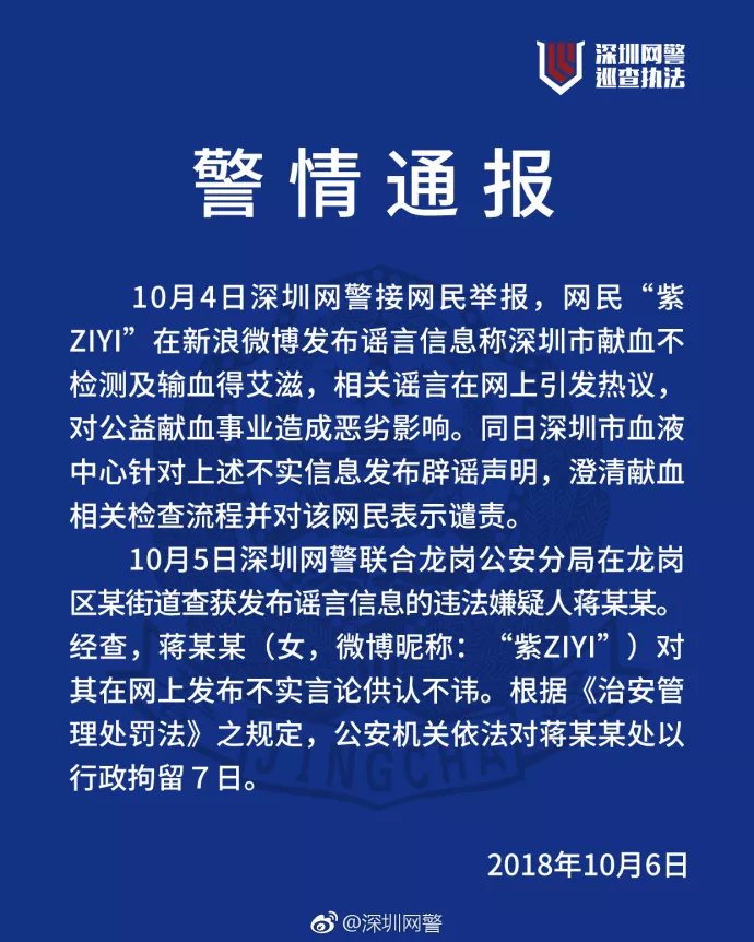 深圳是國內最早開展無償獻血的城市,公益獻血事業救助大量病患,深圳網警在此號召大家積極參與公益獻血。造謠違法,獻血光榮。