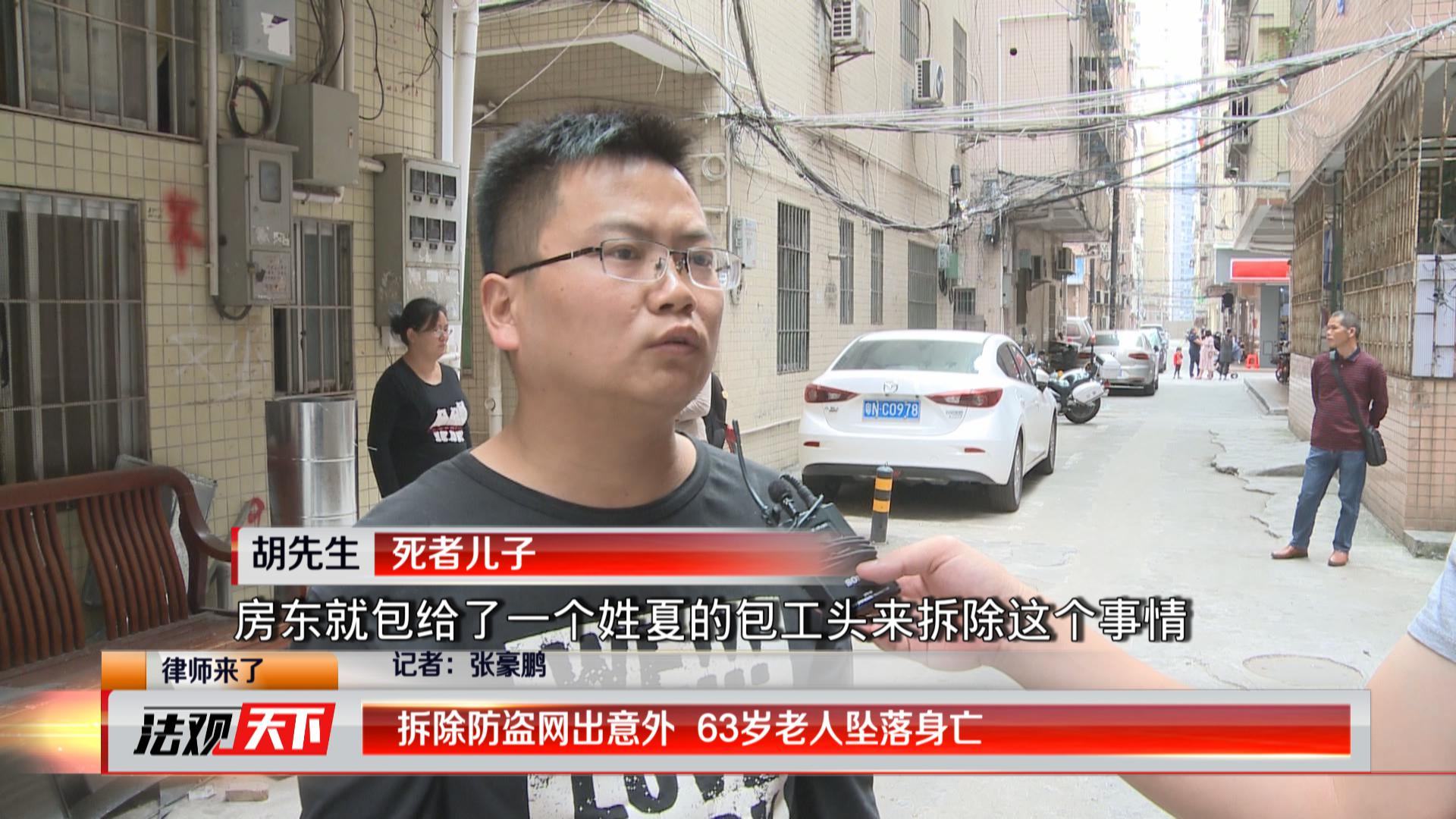 10月6號,一位姓夏的包工頭找到了他父親,讓老胡到龍崗坂田西村二巷10號拆除防盜網。由于工程量大,他找來了兩名工友一起做,這時意外發生了。