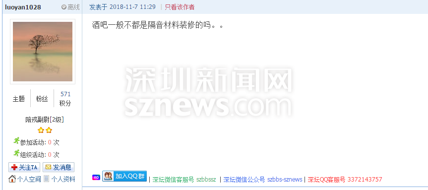“酒吧一般不都是隔音材料裝修的嗎?”網友“luoyan1028”在回復該帖文時提出了自己的疑問。眾所周知,高速公路兩旁,常常設有隔音板以減少噪音污染,降低對周圍居民的影響。那么作為以營利為目的,并向公眾開放、消費者自娛自樂的歌舞、游藝的酒吧場所,裝修時使用隔音材料就更是必不可少了。只是,這所米蘭國際酒吧真的安裝了隔音板嗎?