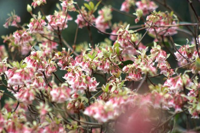 "這種花的特別之處在于先開花,后長葉。"梧桐山風景區管理人員介紹,吊鐘花開花的順序也十分有趣。枝頭小小如嫩筍般的就是它的花苞。當"嫩筍"每一片包片的邊緣開始變成紅色,"嫩筍"的頂部就開始綻開,第一朵風鈴狀的小花從"筍"尖"破繭而出"。待第一朵花長好后,其他花方才陸續相繼開放。