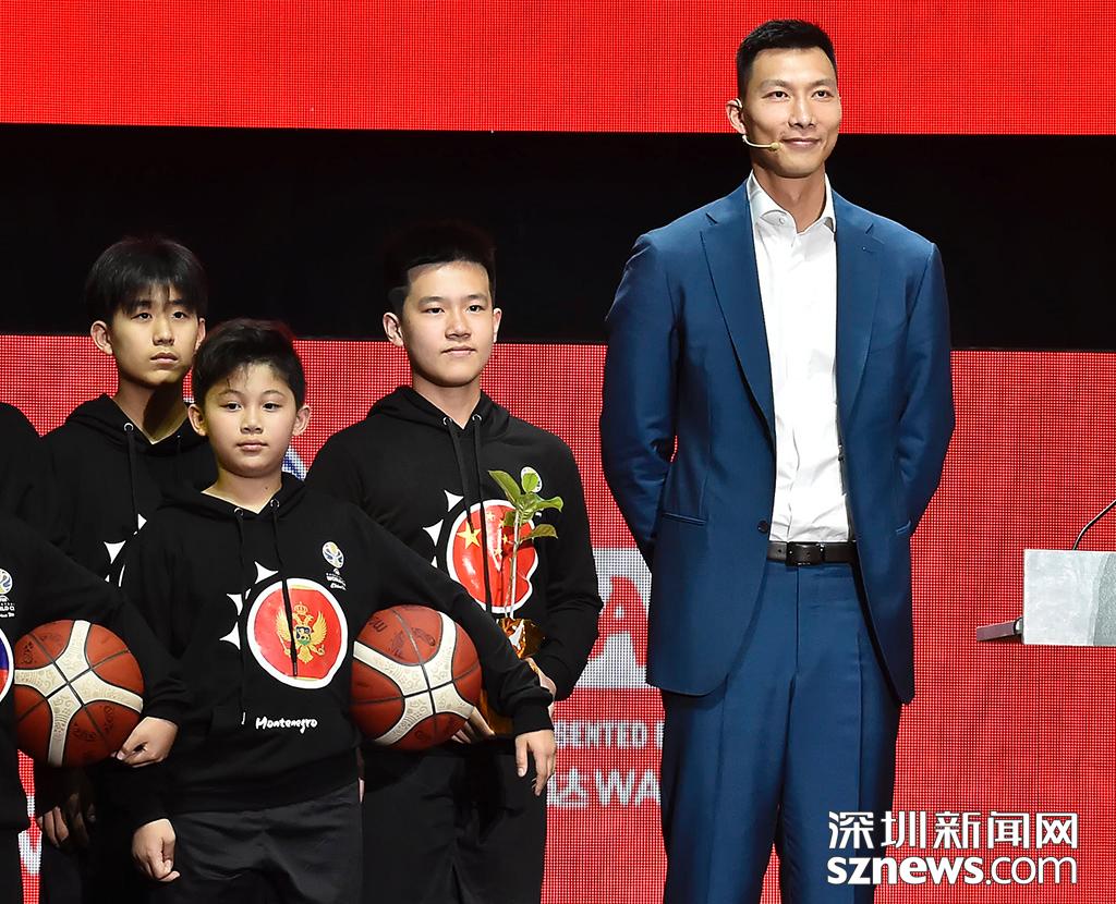 籃球明星易建聯在抽簽儀式亮相并接受采訪