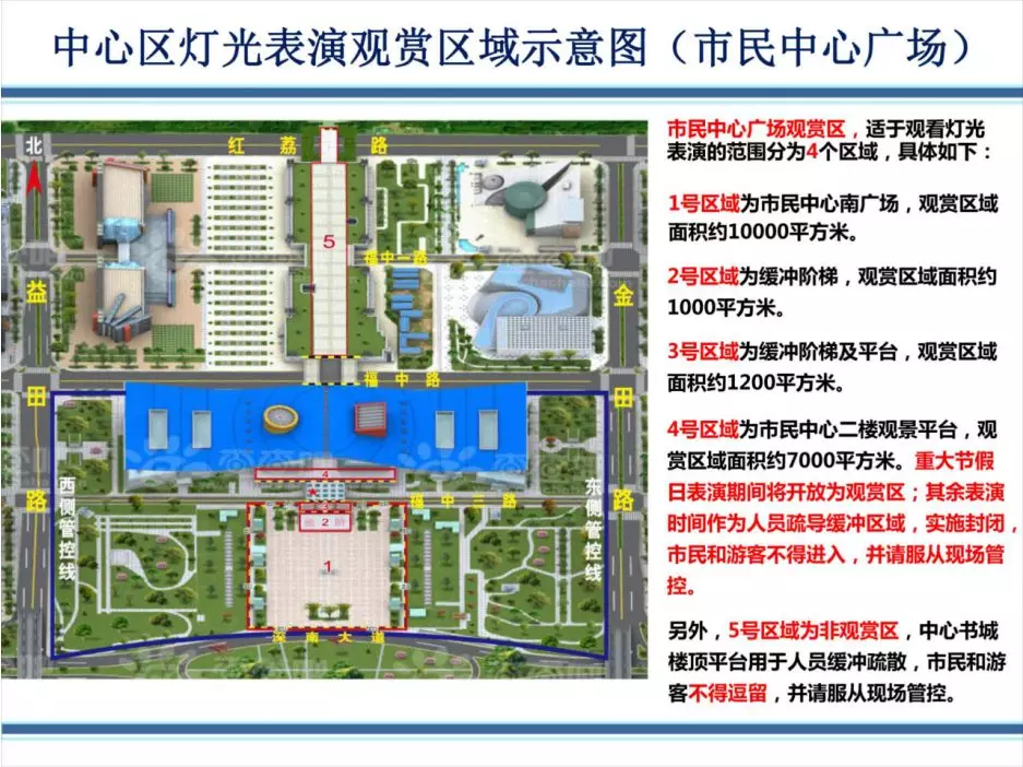中心區燈光表演觀賞區域示意圖