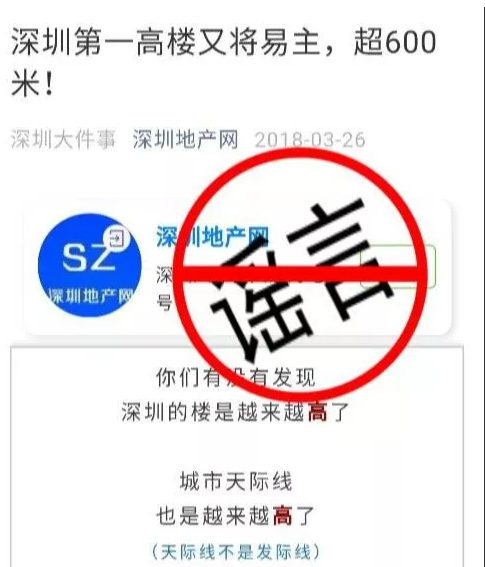 深廣電第一現場2019年4月5日訊 最近有報道稱,深圳第一高樓即將易主。難道這也意味著新的摩天大樓拔地而起了?這則刷屏大家朋友圈的消息今天被證實為謠言!