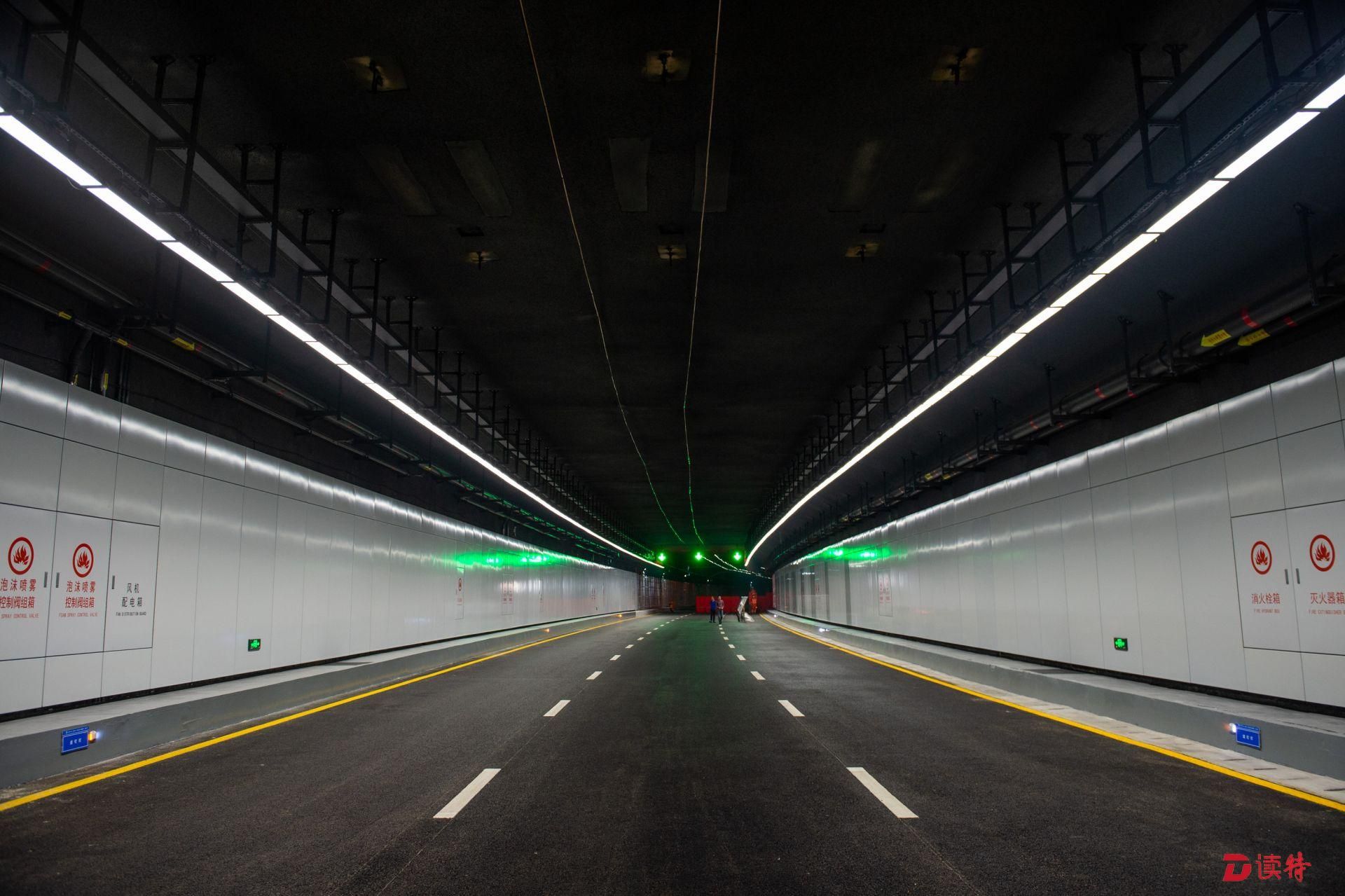 4月16日,讀特記者從臨海大道與前灣三路路口附近乘車進(jìn)入地下道路,看到前海地下道路已經(jīng)實(shí)現(xiàn)主體隧道貫通,項(xiàng)目進(jìn)入裝飾裝修和機(jī)電設(shè)備安裝階段,工人正在隧道內(nèi)安裝照明、通風(fēng)、排水、消防等設(shè)施。在項(xiàng)目工程樣版段,記者看到隧道兩側(cè)的已經(jīng)裝好搪瓷鋼板,頂部的連續(xù)燈帶和交通指示燈也已經(jīng)安裝到位,地面上也已經(jīng)劃好了分道線。中鐵四局機(jī)電公司相關(guān)負(fù)責(zé)人表示,目前前海地下道路機(jī)電裝修工程樣板已經(jīng)順利通過驗(yàn)收,為接下來大面積機(jī)電裝修施工提供了標(biāo)準(zhǔn)指引。該負(fù)責(zé)人表示:“全線共安排了一百多名工人,分區(qū)域進(jìn)行設(shè)備安裝和裝飾裝修,將確保項(xiàng)目年底竣工、2020年初通車,為前海發(fā)展提供更好交通保障。”