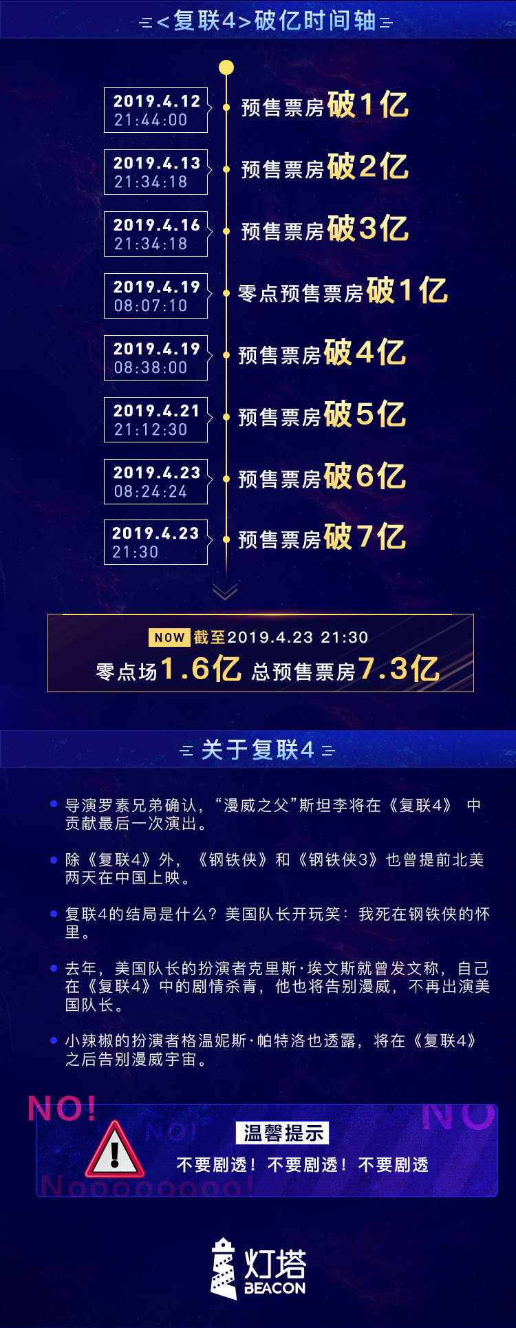 深圳新聞網4月24日訊(記者 陳婕)相信你的朋友圈已經被“復聯4”占據了領地,而小記認識的英雄還湊不齊一桌麻將。截至24日00點,《復仇者聯盟4》預售已破7億!超《美國隊長2》總票房,在《復聯4》的預售峰值期,淘票票預售市場占比過半。