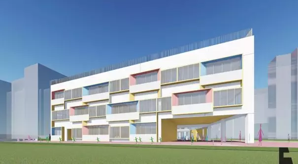 退距和滿足日照是首要解決的兩大問(wèn)題。項(xiàng)目與周邊多層住宅距離較近,在被3小時(shí)日照線及周邊建筑最近點(diǎn)的18米范圍線切割的用地上布置幼兒生活用房,同時(shí)保證主要的幼兒生活用房(即班級(jí)活動(dòng)單元)滿足日照情況下,自然形成了扭動(dòng)的班級(jí)活動(dòng)單元,借這個(gè)扭動(dòng)形成了本案的設(shè)計(jì)理念:(糖果盒子、愛(ài)與信念)。建筑造型反映新、奇、趣、美的建筑個(gè)性風(fēng)格。