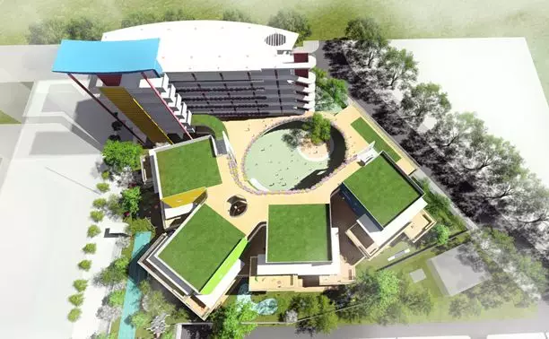 室外環(huán)境設(shè)有滿足孩子們的橡膠跑道、人工草坪,大型娛樂(lè)滑梯設(shè)施等等,各層也設(shè)置了公共平臺(tái),為幼兒提供多樣化的樂(lè)趣,滿足幼兒好奇、好動(dòng)、好模仿的特點(diǎn)。在屋頂設(shè)置了綠植與小型趣味玩具區(qū),讓幼兒接觸自然,喜歡自然。