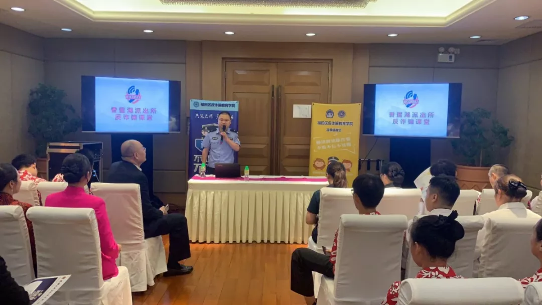 同時,第37場反詐騙教育學院公開課在香蜜湖派出所轄區丹桂軒開展。此次課程主要針對餐廳服務人員進行。根據服務人員工作時間長,平時休閑娛樂活動單一的特點,反詐講師特別著重講解“終結詐騙”小程序游戲的玩法,希望餐飲從業人員休息時多學習反詐知識,從而達到反詐目的。