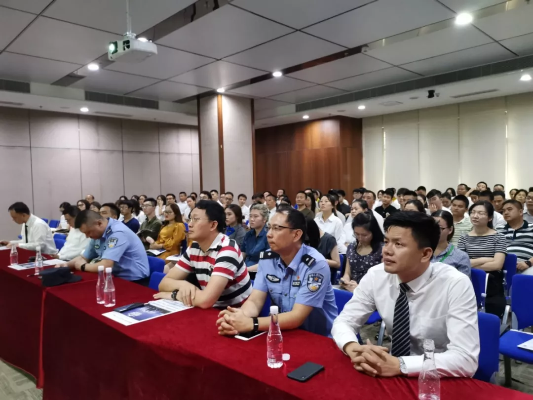 7月29日,福田區反詐騙教育學院第36場公開課走進泰然大廈,天安數碼城園區中近300家企業、近800位員工參與了此次課程。課程主要由福田區反詐民警講師莫基鋒警官進行講解,莫警官根據園區內企業財務人員較多的特點著重解析財務人員如何防騙及騙后如何補救。會后,近50家企業向藍馬甲宣傳隊員登記,希望反詐周刊能定期送到企業,供員工及客戶閱讀,一起為反詐出力。