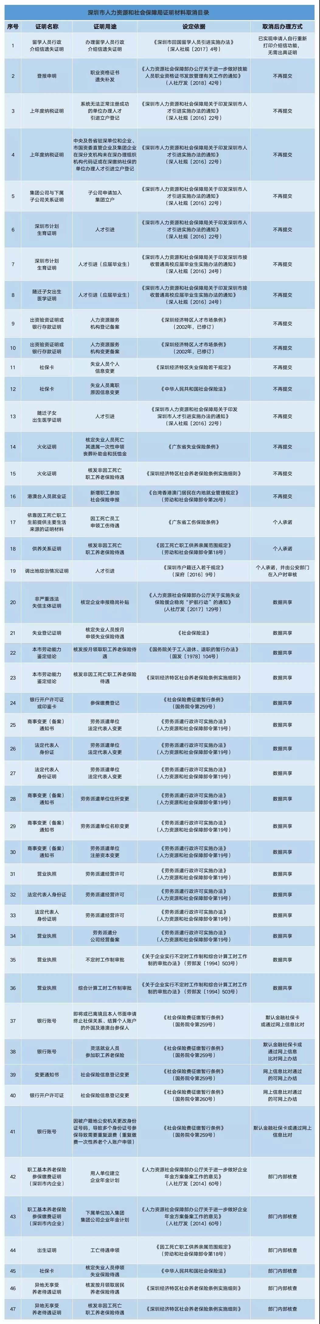 深圳特區報2019年7月31日訊 好消息,為了減證便民、優化服務,深圳市人力資源和社會保障局日前取消了47項證明材料!