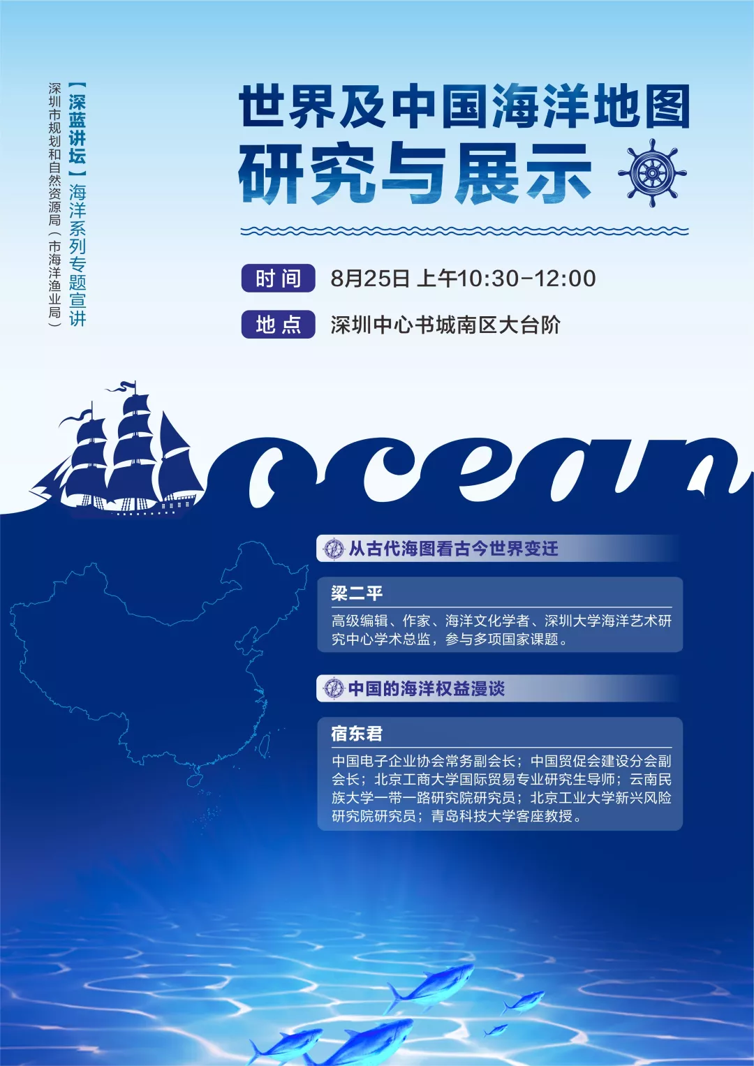 麥哲倫完成了第一次環(huán)球航行、哥倫布發(fā)現(xiàn)了新大陸、迪亞士最早探險至非洲最南端好望角、達伽馬開辟了通往印度的新航線…… 2000多年前,在茫茫大海上 裝備簡陋的航海者 取暖靠抖、通訊靠吼 沒有網(wǎng)絡(luò)、沒有手機、沒有GPS …… 卻能在廣闊無邊的大海中 找到心之所向的目的地 這是因為 他們有一張神奇的圖——海圖 梁二平:從古代海圖看古今世界變遷 世界上這一次又一次的航海大發(fā)現(xiàn),或者是由黃金、白銀、香料、瓷器、黑奴貿(mào)易等所引發(fā)的大侵略、大移民、大變革,都在一張小小的圖中展現(xiàn)得淋漓盡致。 大航海時代早期,西班牙、葡萄牙稱霸海洋,出盡了風(fēng)頭,靠的就是海圖。后來英國擊敗荷蘭,意識到光靠戰(zhàn)爭是控制不了海洋的,更重要的是海洋知識。于是,英國設(shè)立了一個水文部,專門進行測量和制作海圖。這便是一代“海上霸主”崛起的關(guān)鍵。 每一幅海圖 都承載著豐富的地理、社會及歷史信息 不同時代、地域,不同文化背景下的海圖繪制者 對空間有著不同的理解 描繪世界的方式也有所不同 海圖一步一步從文字描述到精確標(biāo)注 東西方海圖相互交融發(fā)展 為海洋變遷提供了真實的見證 一張小小的海圖 卻扮演著舉足輕重的“角色” 其實,它也和海洋權(quán)益 也有著密不可分的關(guān)系 宿東君:中國的海洋權(quán)益漫談 談及主權(quán)問題 我們總是滿懷著一腔熱血 看紀(jì)錄片時 海上時不時會漂浮著一個個小浮標(biāo) 想知道小浮標(biāo)對海洋科技考察有什么作用? 中國先驅(qū)又是如何歷盡艱難險阻 主張屬于中國的海洋權(quán)益的? 想知道引發(fā) 南海問題、釣魚島問題的“來龍去脈”嗎? 以上的種種疑問 都將在8月25日的“”深藍講壇” 一同為你揭曉! “深藍講壇” 2017年5月,《全國海洋經(jīng)濟發(fā)展“十三五”規(guī)劃》明確提出推進深圳建設(shè)全球海洋中心城市,在投融資、服務(wù)貿(mào)易、商務(wù)旅游等方面進一步提升對外開放水平和國際影響力,打造成為“21世紀(jì)海上絲綢之路”的排頭兵和主力軍;2018年9月,市委市政府印發(fā)《關(guān)于勇當(dāng)海洋強國尖兵加快建設(shè)全球海洋中心城市的決定》及實施方案;2019年,深圳創(chuàng)建全球海洋中心城市納入到《粵港澳大灣區(qū)規(guī)劃發(fā)展綱要》和《關(guān)于支持深圳建設(shè)中國特色社會主義先行示范區(qū)的意見》。 為讓社會了解這一重要政策,計劃通過開展“深藍講壇”專題系列活動,通過專家講授、市民互動等活動,請市民對我市海洋發(fā)展政策、主要目標(biāo)和實施路徑等建言獻策,在擴大影響面的同時收集好的意見和建議,以更好地推動我市海洋各項工作的順利開展,為我市創(chuàng)建全球海洋中心城市營造氛圍,奠定思想基礎(chǔ)。 現(xiàn)在,“深藍講壇”專題系列活動真的來了! 8月25日 以“世界及中國海洋地圖研究與展示”為主題 2019年首場“深藍講壇”海洋系列專題宣講活動 即將拉開帷幕