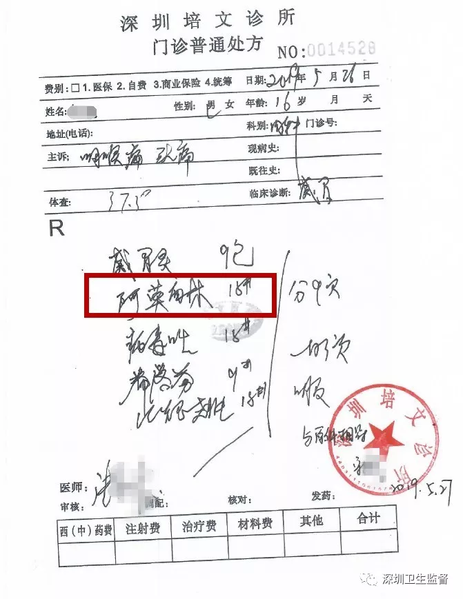 醫師張某為其開具“阿莫西林”等藥物