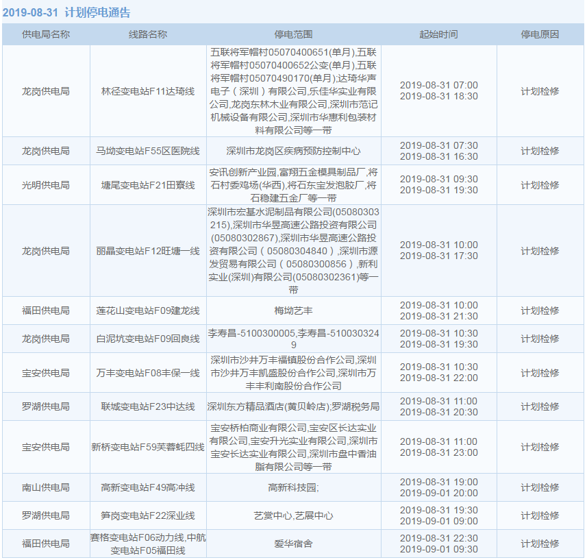8月27日至9月12日,深圳這些地方停電!快看影響你家沒