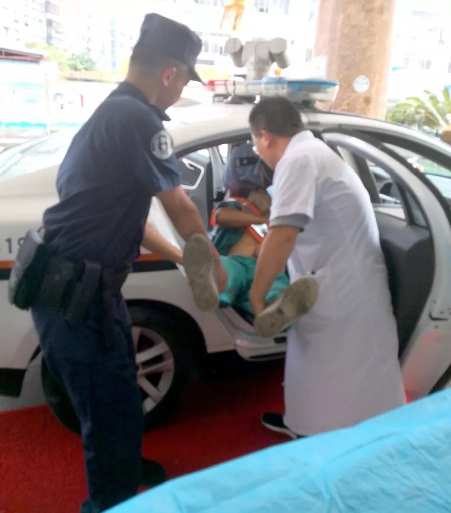 羅明星和交警隊員還有一名熱心群眾一起把這名環衛工人抬上了警車。憑借著對轄區的了解,羅明星很快將他送到了最近的仁愛醫院。