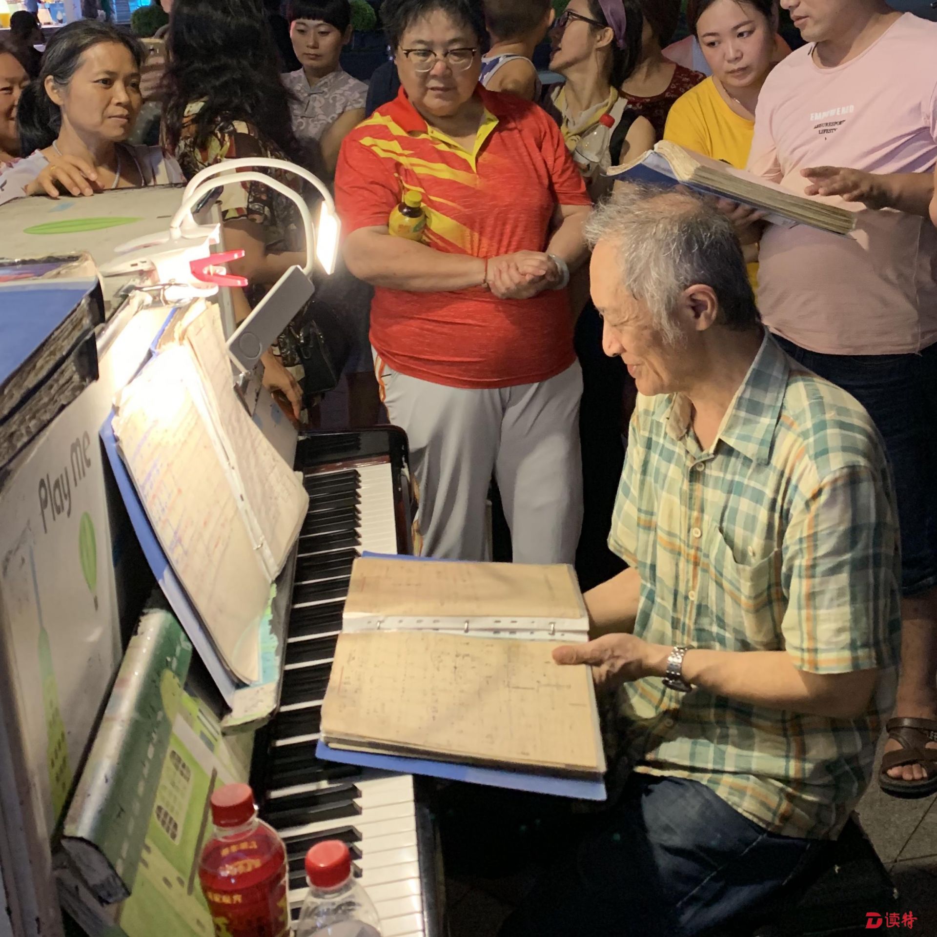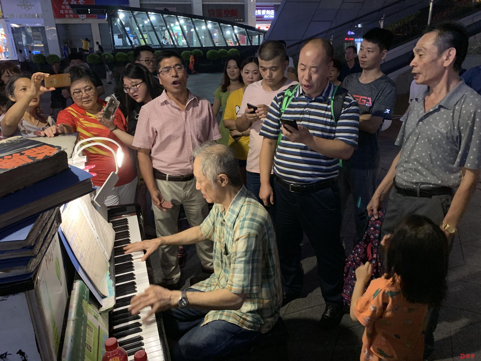 深圳特區(qū)報2019年9月23日訊 每天晚上9點,一場小型的“鋼琴音樂會”準(zhǔn)時在華強(qiáng)北商業(yè)街上演。“音樂會”的聽眾默契地圍在鋼琴邊上,一首接一首地給坐在琴凳上的老人點歌。