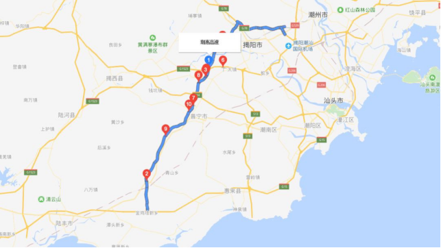 潮惠高速與惠莞高速相接,深圳車友可經博深高速-惠莞高速-潮惠高速前往潮州。相比于行駛深汕高速,全程少70余公里,節省約1個小時。