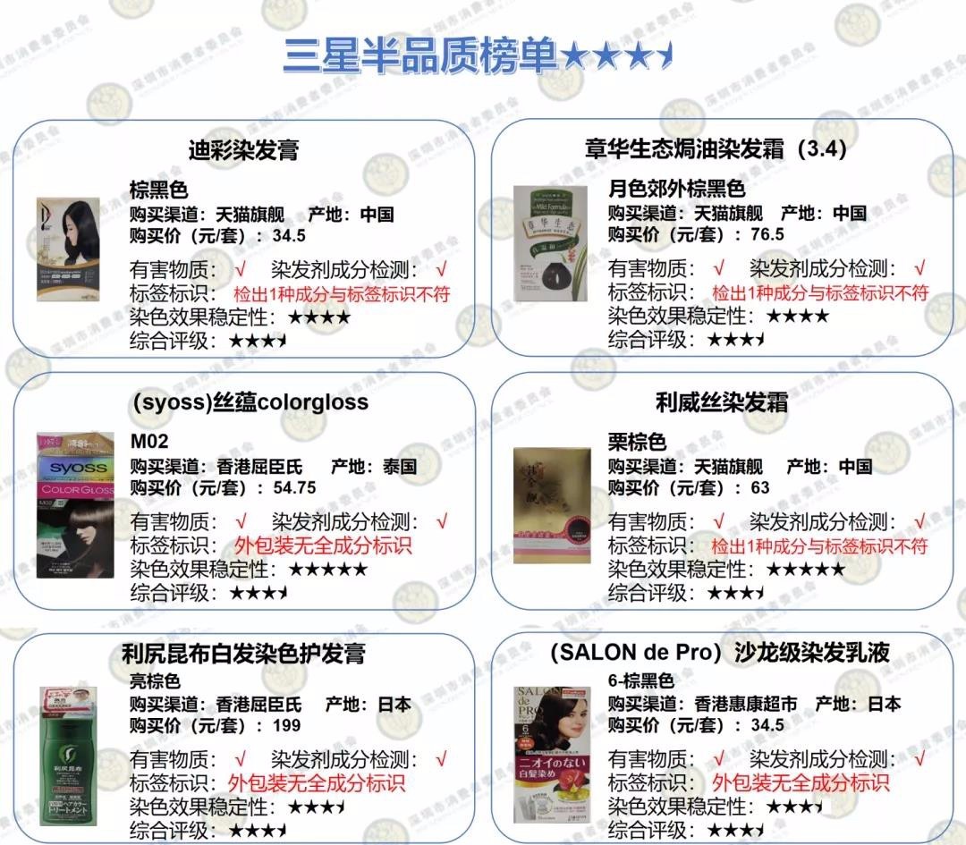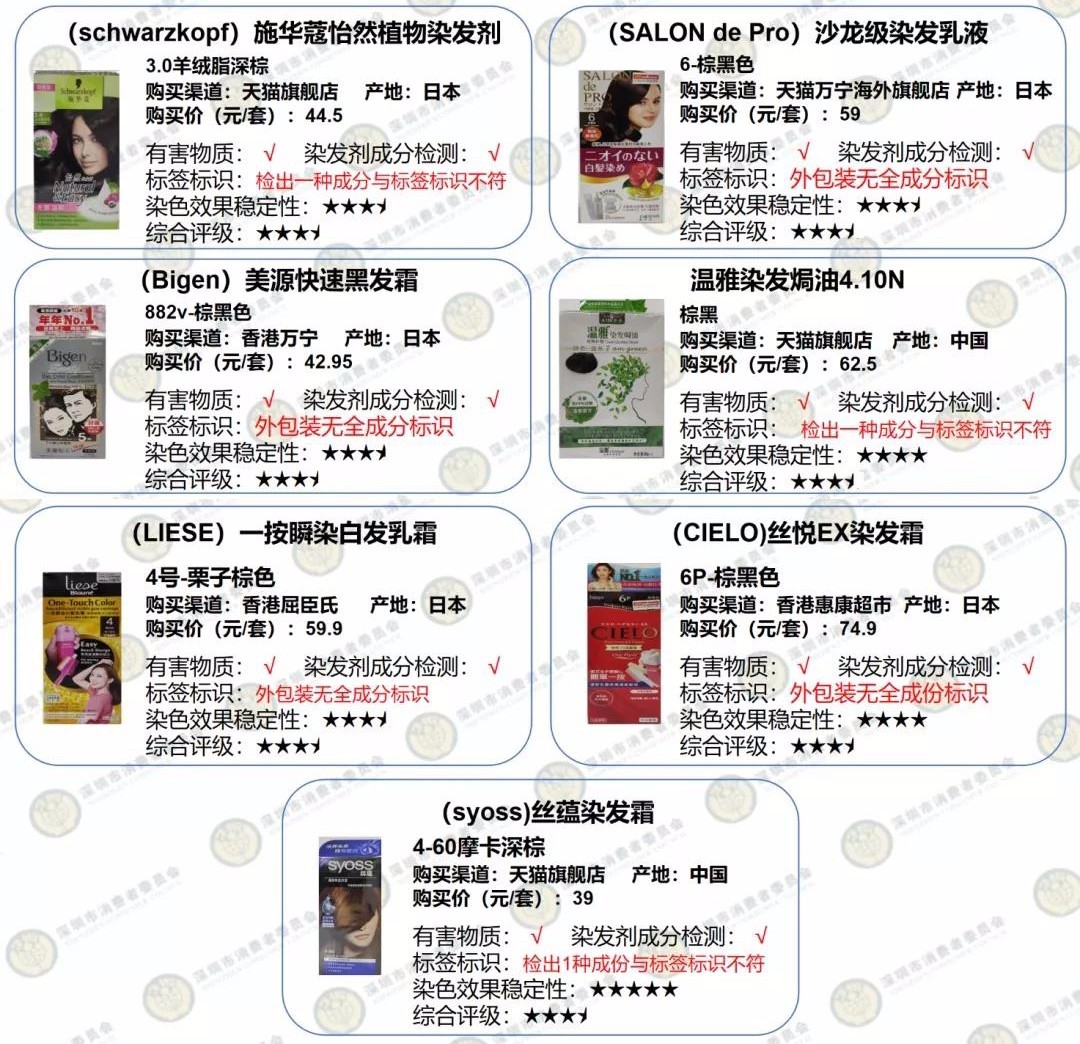 深圳消委會(huì)評測20款染發(fā)劑:多款產(chǎn)品個(gè)別成分與標(biāo)簽不符
